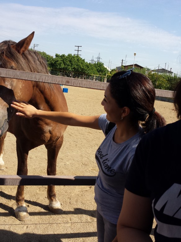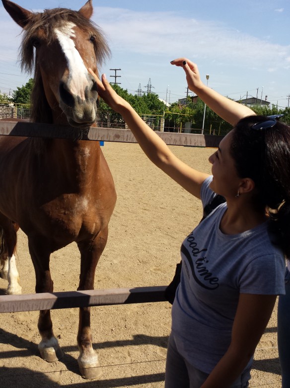 Սկզբում վախենում էի մոտենալ ձիուն,բայց կամաց- կամաց մոտենալով նրա հետ զրուցելով սկսեցի շոյել, կարծում եմ նրան դուր եկավ: